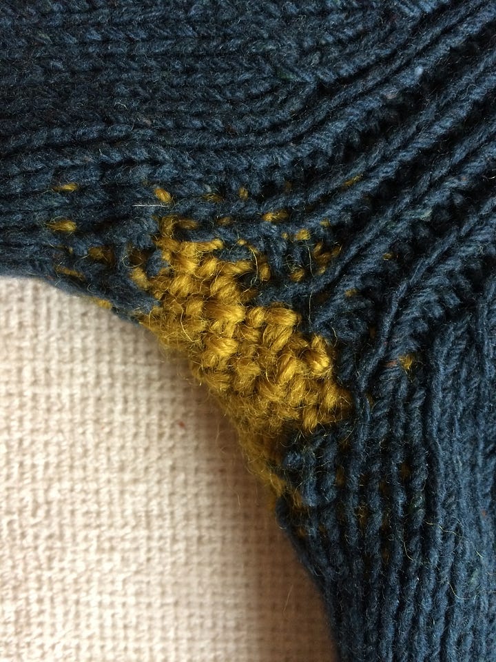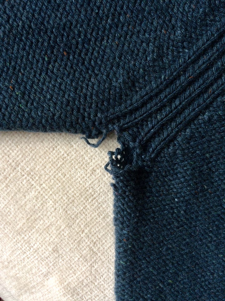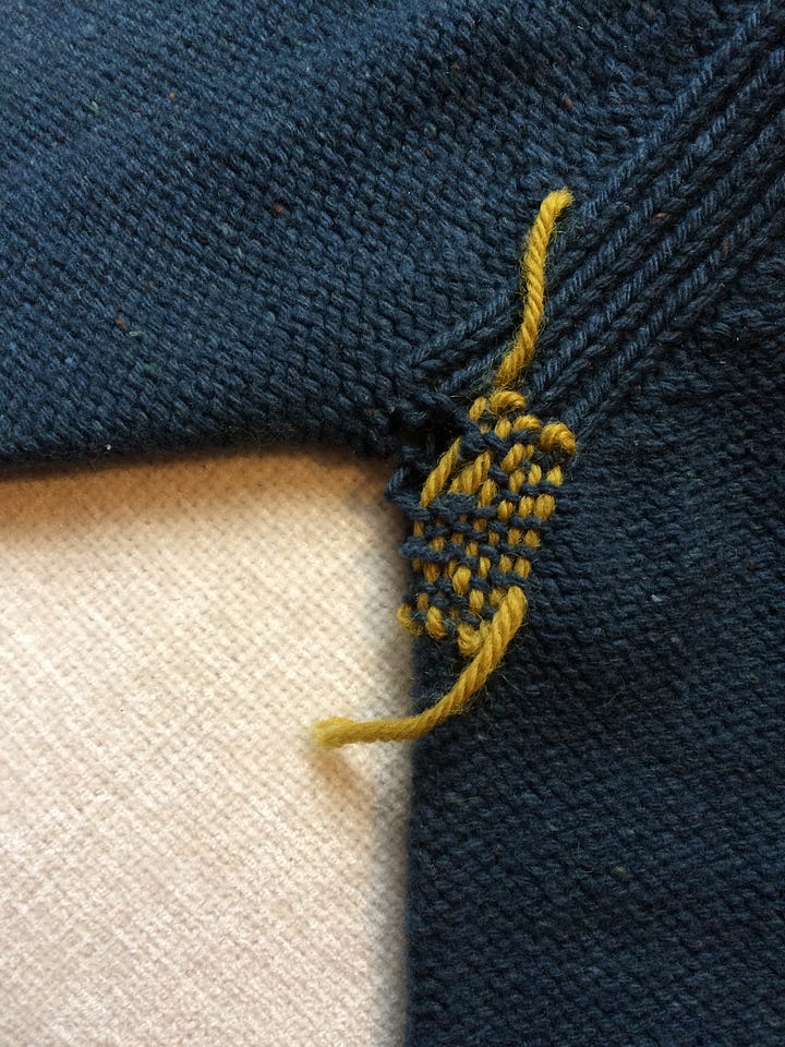I’m not a knitter so it was tricky to work out how to approach it. Because of the design – with no seam under the arm - I had to darn it from various angles, in sections.
