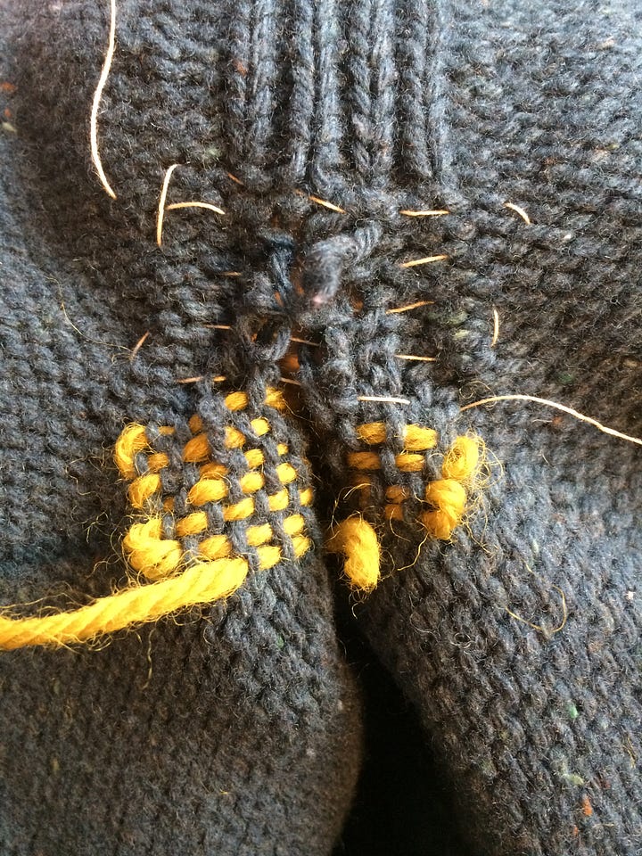 I absolutely love this colour combination – it’s certainly very visible. The first time my sister saw it, I hadn’t mentioned the repair, and she commented that I looked like I had a egg yolk under my arm!