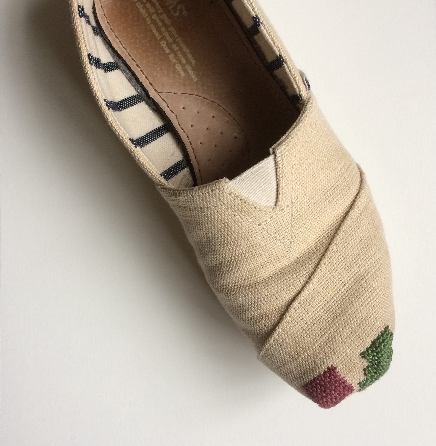 The eagle-eyed among you might remember that in my last post I said I’d write about my holey Hylo trainers this week. And it doesn’t take such keen vision to notice that the photo you see before you is not of a trainer. It’s a Toms shoe. My ‘house shoe’ to be precise.