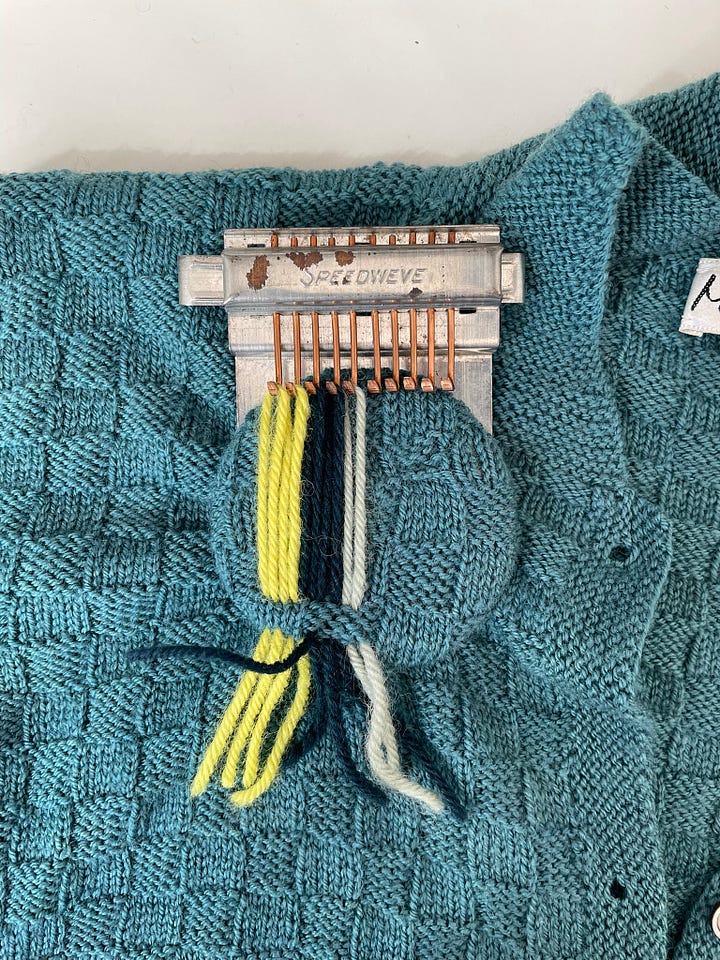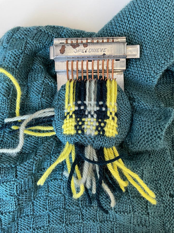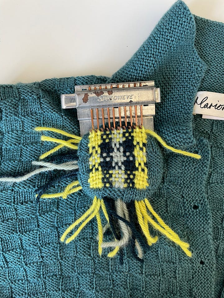 Once I’d completed all the weft rows, I removed the Speedweve. I then stitched through each of the top loops to secure the top of the patch.