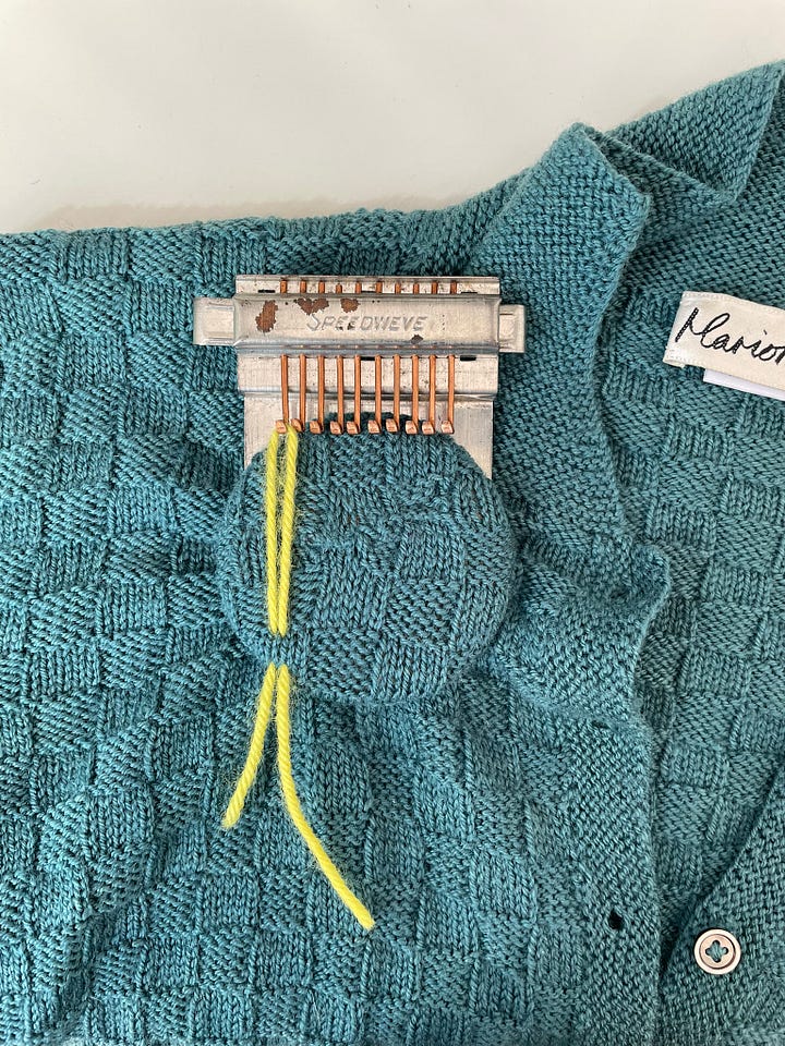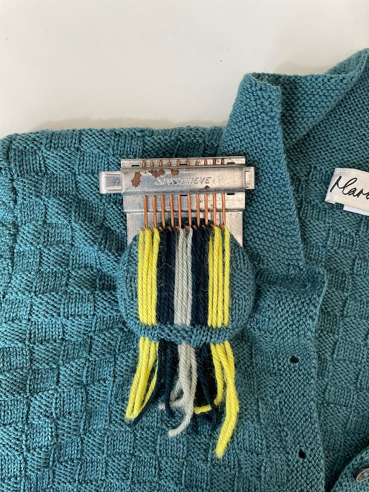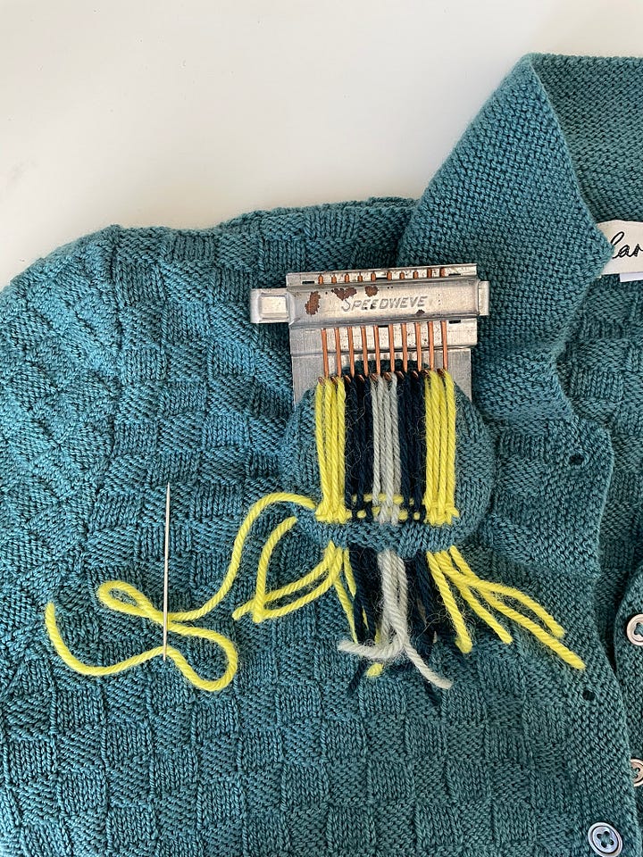 That’s the kind I chose for the second repair on my vintage Marion Foale cardigan. In last week’s post I shared a small darn on the collar, and the larger repair is designed to complement that. This darn honours the cardigan’s knit, colour and style whilst being unapologetically bold. The combination - the bringing together of old and new - is a celebration of the original design and the life it has lived.