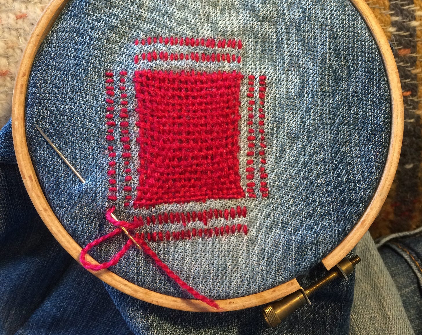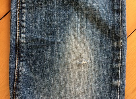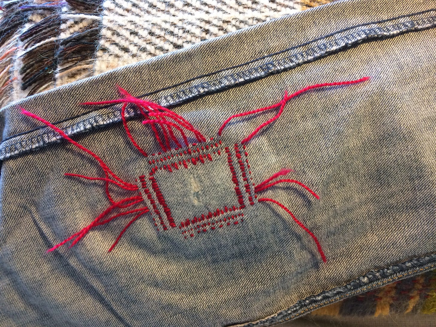 What I’m wearing: The jeans in this post have undergone numerous mends. I’m wearing them as I type this and will share all their repairs another day.